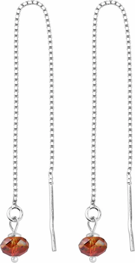 Trendy sierlijke sterling zilveren doortrekoorbellen met vierkante schakel met een klein rood Swarovski kristallen hangertje. Swarovski kristal heeft een diamant-achtig effect, een hoogwaardige afwerking, een sprankelende uitstraling en is een uitstekend betaalbaar alternatief voor diamanten. De oorbellen worden verstuurd in een mat zwart sieradendoosje in gratis cadeauverpakking.