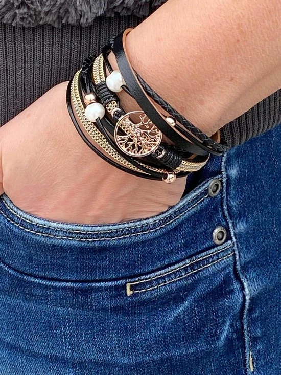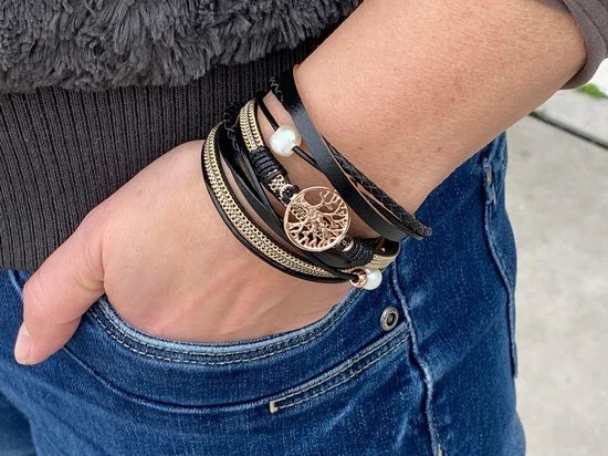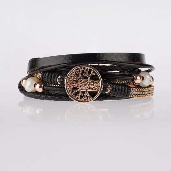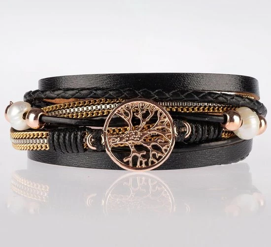 De Life armband is een mooie combinatie leer en metaal met diverse zoetwaterparels en metalen parels. Trendy en sportieve armband die iedere outfit zal aanvullen. Afgewerkt met een mooie levensboom medaillon.