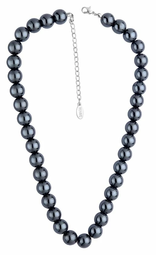 Korte ketting met kralen van hematiet. De ketting heeft een lengte van 46 cm