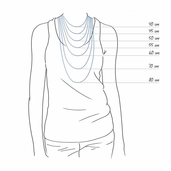 + een verlengketting van 7cm waardoor de totale lengte op 53 cm komt. De dikte van de grijze hematiet kralen is 1,2 cm.