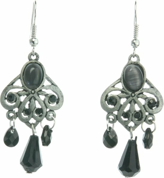 Oorhanger vintage design met steentjes en hangertjes. Lengte 5,5 cm, breedte 2 cm, dikte 7,5mm.