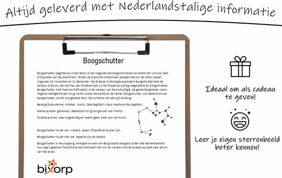 Bij de ketting wordt een pagina met informatie over het sterrenbeeld sterren geleverd, wat het een nog leuker cadeau maakt !