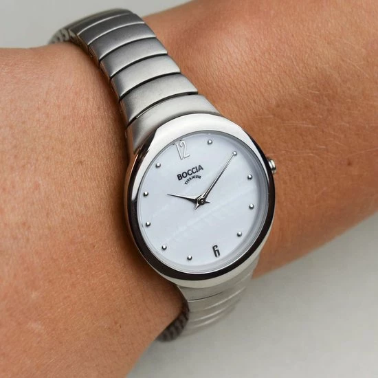 Dit Boccia Titanium dameshorloge heeft een titanium kast. Het horloge heeft een afmeting van 27 x 32mm en mineraalglas. De band van het horloge is van titanium en kan op maat worden gemaakt door er schakels uit te halen met een horlogeband inkortset. Of je nu sportief of chique gekleed gaat, dit horloge past bij elke outfit en iedere gelegenheid.