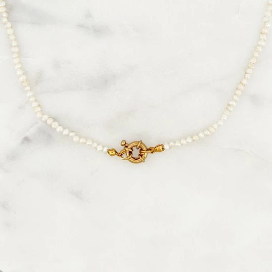 Deze schoonheid is een perfecte basic! Maak je layerparty tijdloos met witte parels. Mix en match met onze andere items.