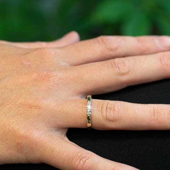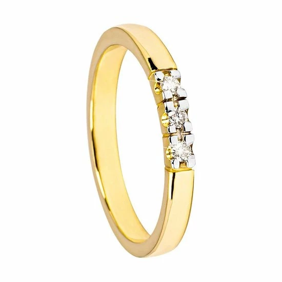 Deze Alliance ring is gemaakt van 14 karaat goud en is gezet met 3 briljanten totaal 0.09 crt. Deze luxe ring is geschikt voor elke gelegenheid en is makkelijk te combineren.