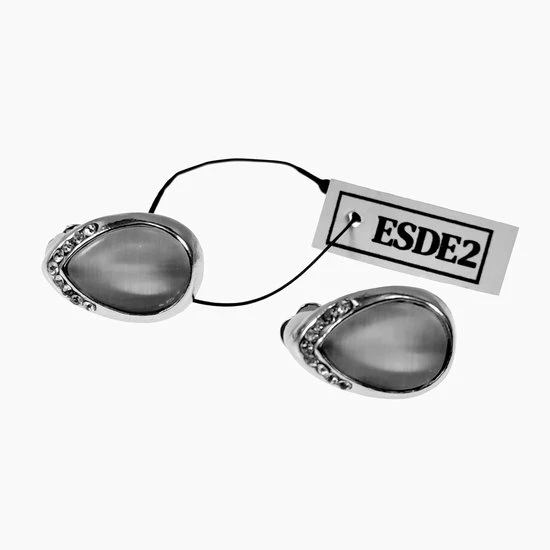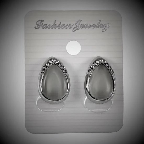 Druppelvorm Clip-on Oorbellen Dames – Oorclips met Lichtgrijs Cabochon en Strass