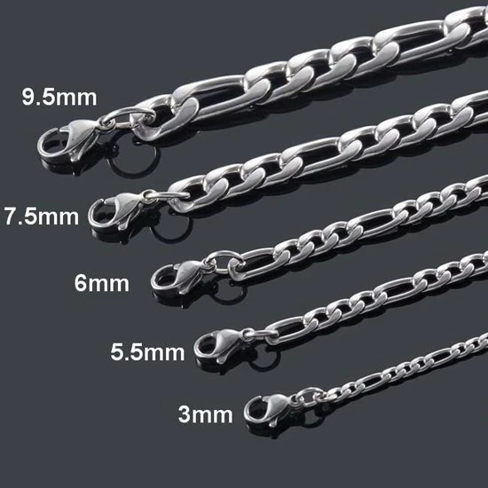 Een zilverkleurige Figaro schakelketting gemaakt van Stainless Steel. De ketting heeft een 3.5mm brede schakel is en kan eventueel gecombineerd worden met een kettinghanger naar keuze. RVS, ook wel edelstaal genoemd geeft niet af, voorkomt de meeste soorten van irritatie en blijft langer mooi.