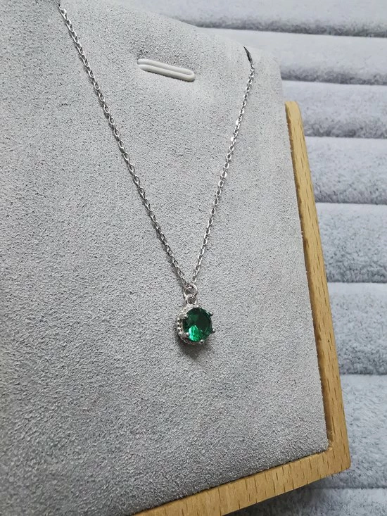 – Lengte 45cm + 5cm- 925 Zilver- Ingelegd met een smaragdkleurige steen