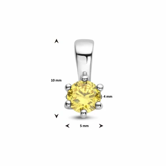Gerhodineerd 925 zilveren ketting met een zirkonia geel geboortesteen. De ketting heeft draaglengtes van 41+4cm. De schakelbreedte is 1,1mm.