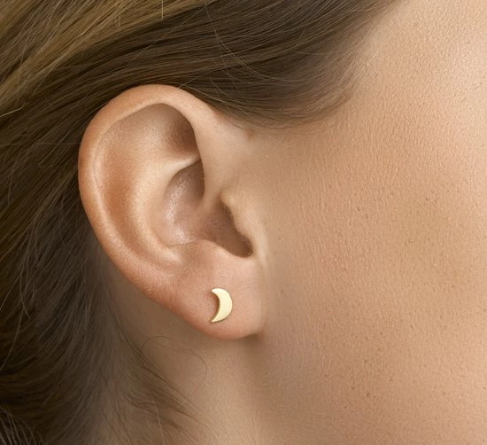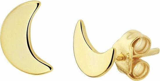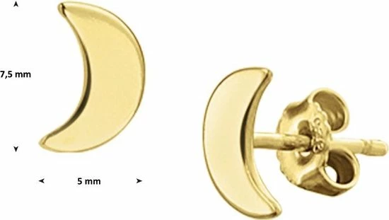 Trendy geelgoud op ziveren maan oorknoppen. De oorknoppen hebben een afmeting van 7.5x5mm. De oorknoppen zijn gemakkelijk te combineren met andere sieraden uit onze collectie of vanuit je eigen sieraden stash. Tip: Leuk om te geven.
