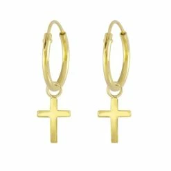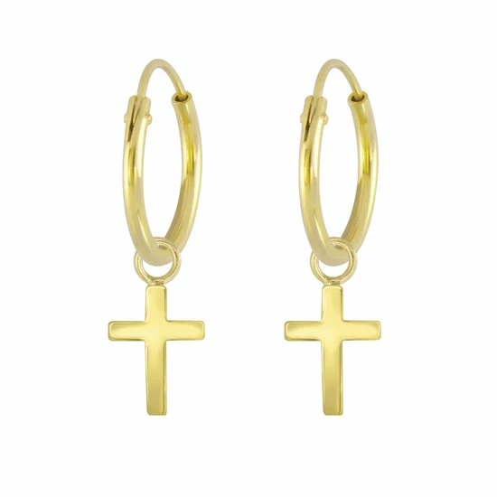 Sterling zilver 925 kruisje bedel oorringen – 14k goudplating.