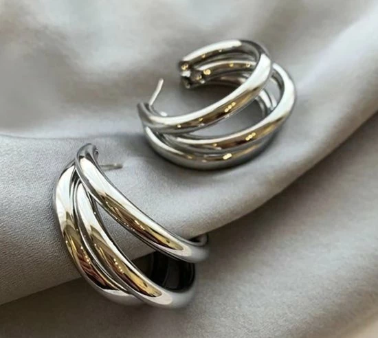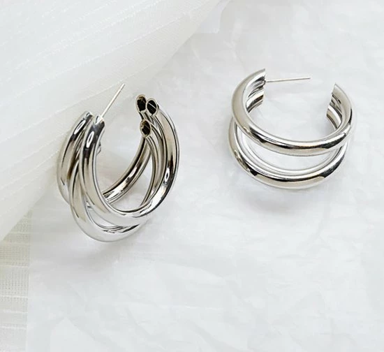Oorbellen dames | zilverkleurige dames oorbellen | oorringen | dubbele oorringen dames | cadeau voor vrouw