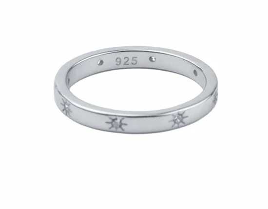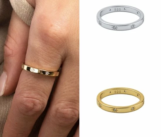 Deze leuke dames ring met sterretjes ingelegd met Zirkonia steentjes is ideaal om als aanschuifring te dragen en daarom goed te combineren met uw overige sieraden.