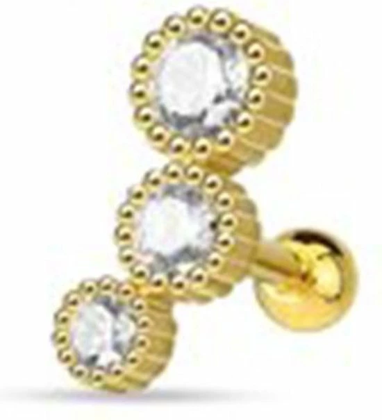 Deze helixpiercing is een eyecatcher. Deze piercing heeft 3 witte steentje van CZ. Waarmee deze piercing gegarandeerd zou glimmen.