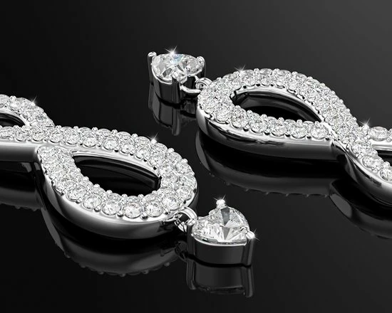 Een mooie aanvulling aan jouw sieraden collectie of een prachtig cadeau nodig met een liefdevolle betekenis? Het infinity symbool en het hartje maken deze oorbellen zeer speciaal! Deze oorbellen zijn heel mooi bewerkt met hoogwaardige zirkonia steentjes. Ook is er gebruik gemaakt van messing wat niet alleen de look verbeterd door een mooie glans maar het hoogwaardige materiaal is ook zeer stevig. Wordt altijd netjes geleverd in een fluwelen Malinsi zakje. Hierbij zijn de oorbellen ook mooi te combineren met de bijpassende armband en ketting. Een prachtig en liefdevol sieraad voor een speciale gelegenheid, kies jouw favorieten en maak jouw of haar collectie helemaal compleet!