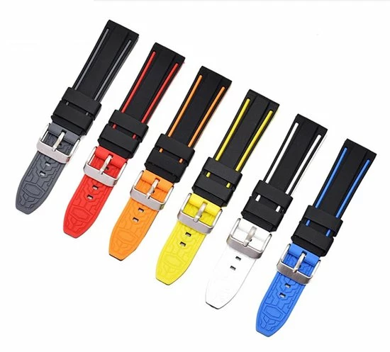 Hoogwaardig Sillicone word veredeld tot het beste basismateriaal voor functionele horlogebanden. Extreem sterk, absoluut waterdicht en uitgerust met een voelbaar hoger draagcomfort dan normale sillicone horlogebanden.