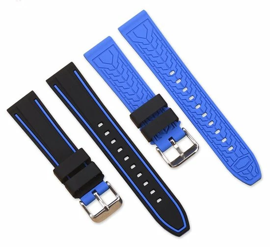 Flexibele horlogeband 20mm siliconen. Deze blauwe horlogeband is gemaakt van siliconen. Deze 20mm siliconen horlogeband wordt geleverd inclusief gesp en pinnen die eenvoudig in te klikken zijn.
