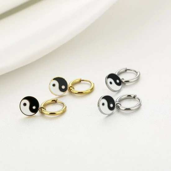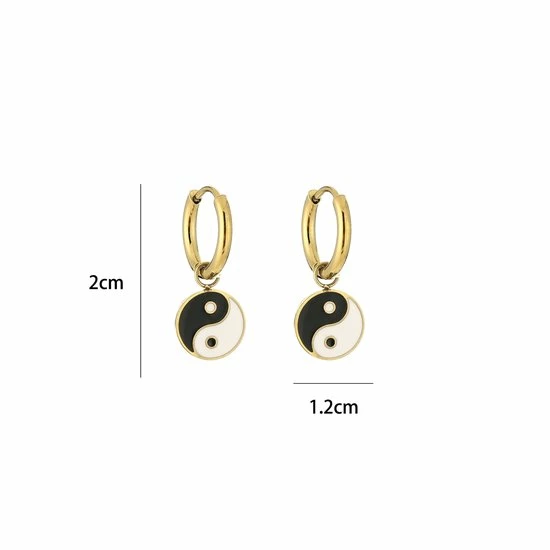 Michelle Bijoux Oorhangers Yin-Yang Goud JE14182. De oorbellen zijn 2 cm lang. Alle sieraden zijn nikkelvrij.