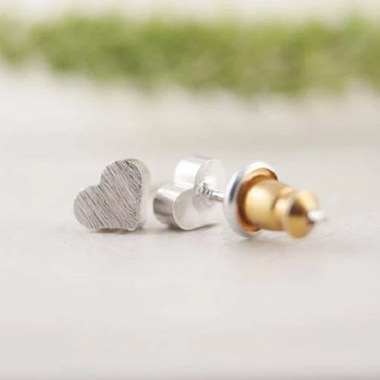 NiSy.nl Hartje Oorknopjes | Oorbellen Geborsteld | Minimalistisch | Zilverkleurig
