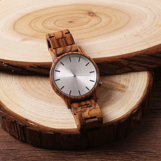 Het horloge bestaat 100% uit sandel en zebrahout waarbij er is gekozen voor duurzame materialen.