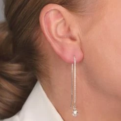 Promo 😀 EAR IT UP – Doortrekoorbellen – Bar – Threader – 925 Sterling Zilver – 69 X 1 Mm – 1 Paar 💯