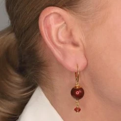 Beste Pirce 😍 ARLIZI 1762 Oorbellen Parel Swarovski Kristal Rood – Sterling Zilver Verguld – 4 Cm 😉
