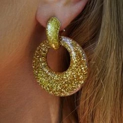 Beste recensies van ✨ Sarzor Oorbellen Met Glitters – Rond – Oorhangers 4×4 Cm – Goud Kleurig 👍