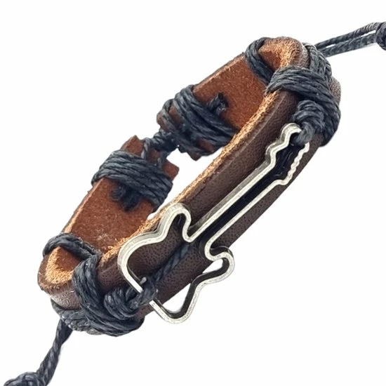 Speel je in een band of hou je van gitaren? Dan is deze stoere lederen armband van Rhylane echt iets voor jou!