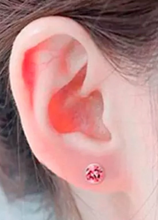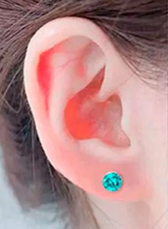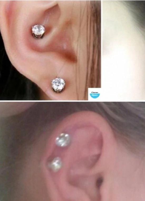 je kunt de oorbellen op verschillende plekken op je oren plaatsen.