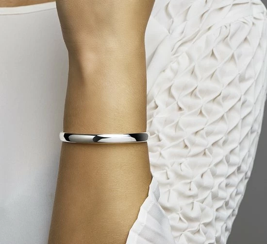 925 Zilveren bangle met een ovale buis en een dop-sluiting. Deze bangle heeft een breedte van 7mm en op het breedste punt een diameter van 60mm.