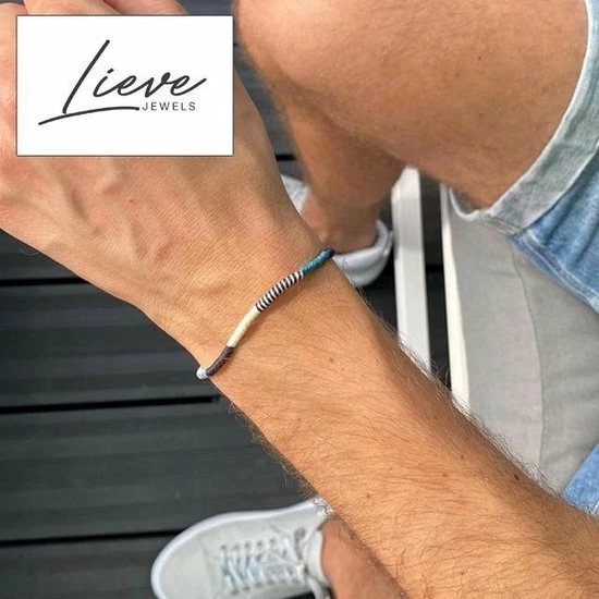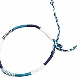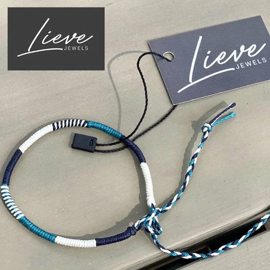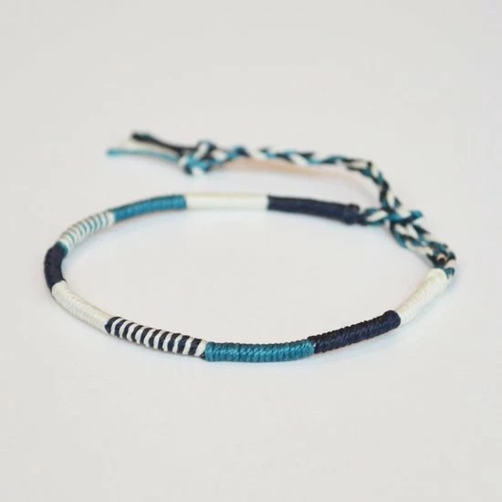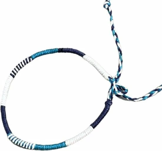 Met deze hippe geweven armband creΓ«er je een mooie look, die zowel stoer als elegant is! De armband is handgemaakt, waarbij de mooie kleurencombinatie van zeegroen, donker blauw en wit zorgt voor een trendy effect. De armband bestaat geheel uit textiel en kan langer/korter gemaakt worden door op de gewenste lengte te knopen. Lengte: 16-20 cm.