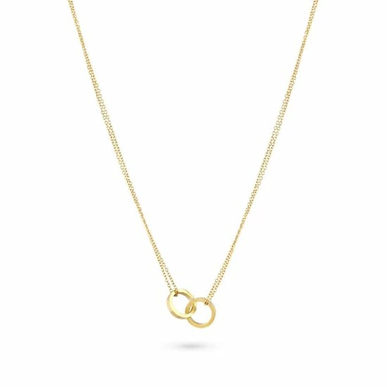 Halsketting in goudkleurig edelstaal, 2 open cirkels, 2 cm, dubele ketting, de lengte is verstelbaar.