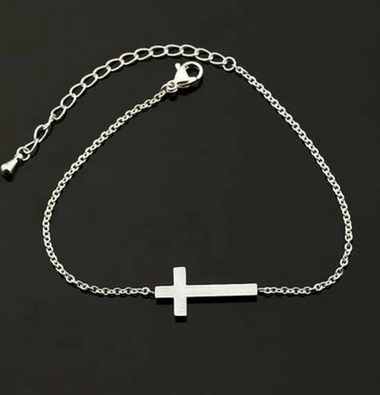 Armband met Gods kruisje verzilverd.