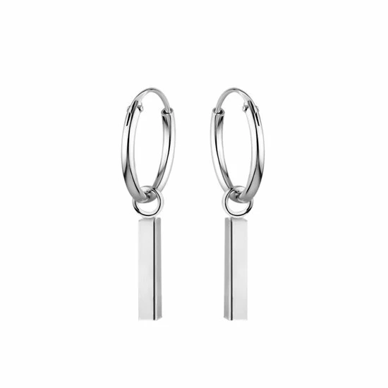 Zilveren oorbellen | Oorring met hanger | Zilveren oorringen met hanger, staafje