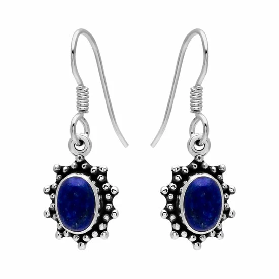 Specificaties voor Zilveren oorhangers, zonnetje met ovale lapis steen