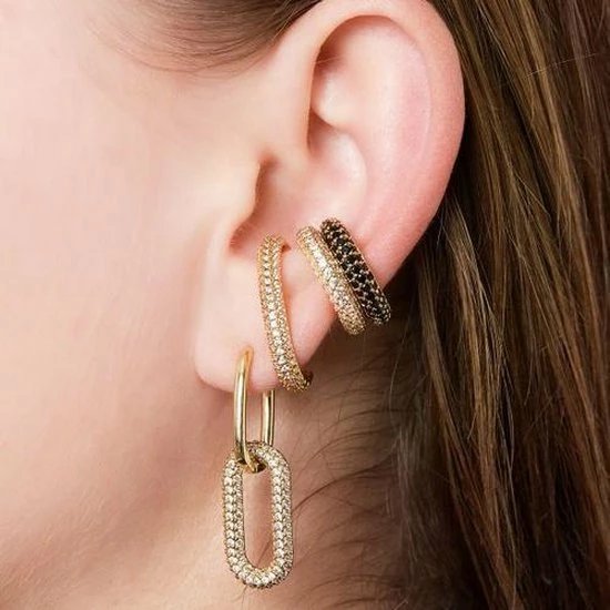 Stijlvolle en stoere koperen ear cuff met zirkoonsteentjes. Verkrijgbaar in 5 kleurstellingen: goud, zwart, roze, groen en zilver.