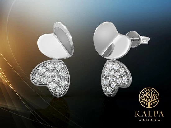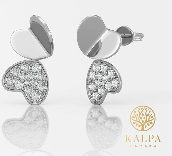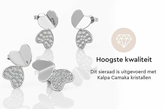 Yolora dames hartjes oorbellen met Γ©chte Kalpa Camaka kristallen. Deze oorbellen zijn gemaakt met een 18K witgouden plating.